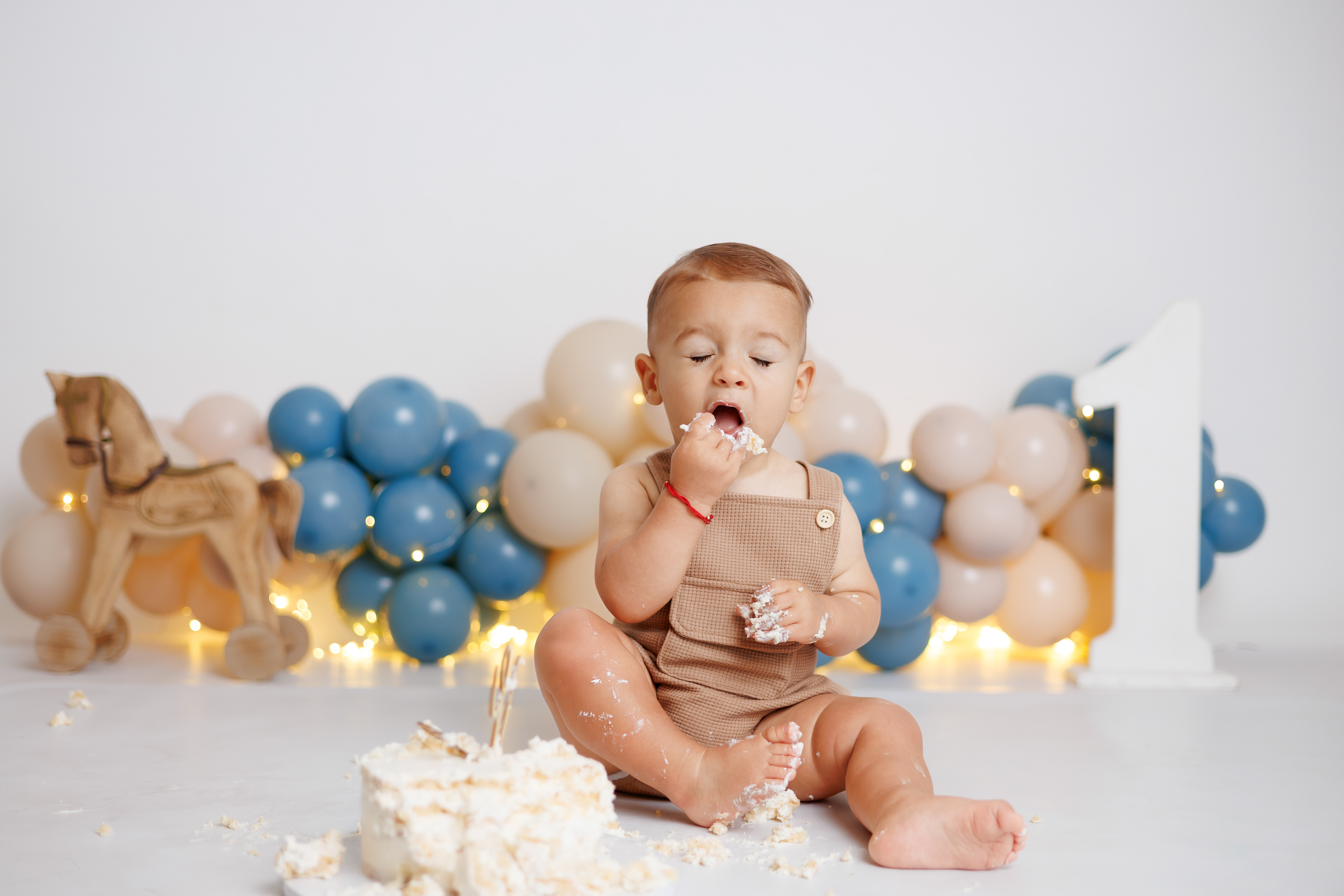 Най-подходящото време за Cake Smash фотосесия е между 11 и 12 месец, когато детето вече седи стабилно, проявява любов към храната и реагира емоционално на новите преживявания. В този период бебетата са по-спокойни, по-изразителни и по-лесно се забавляват с тортата, която води до естествени усмивки и емоции. Освен това снимките са готови навреме за първия рожден ден.